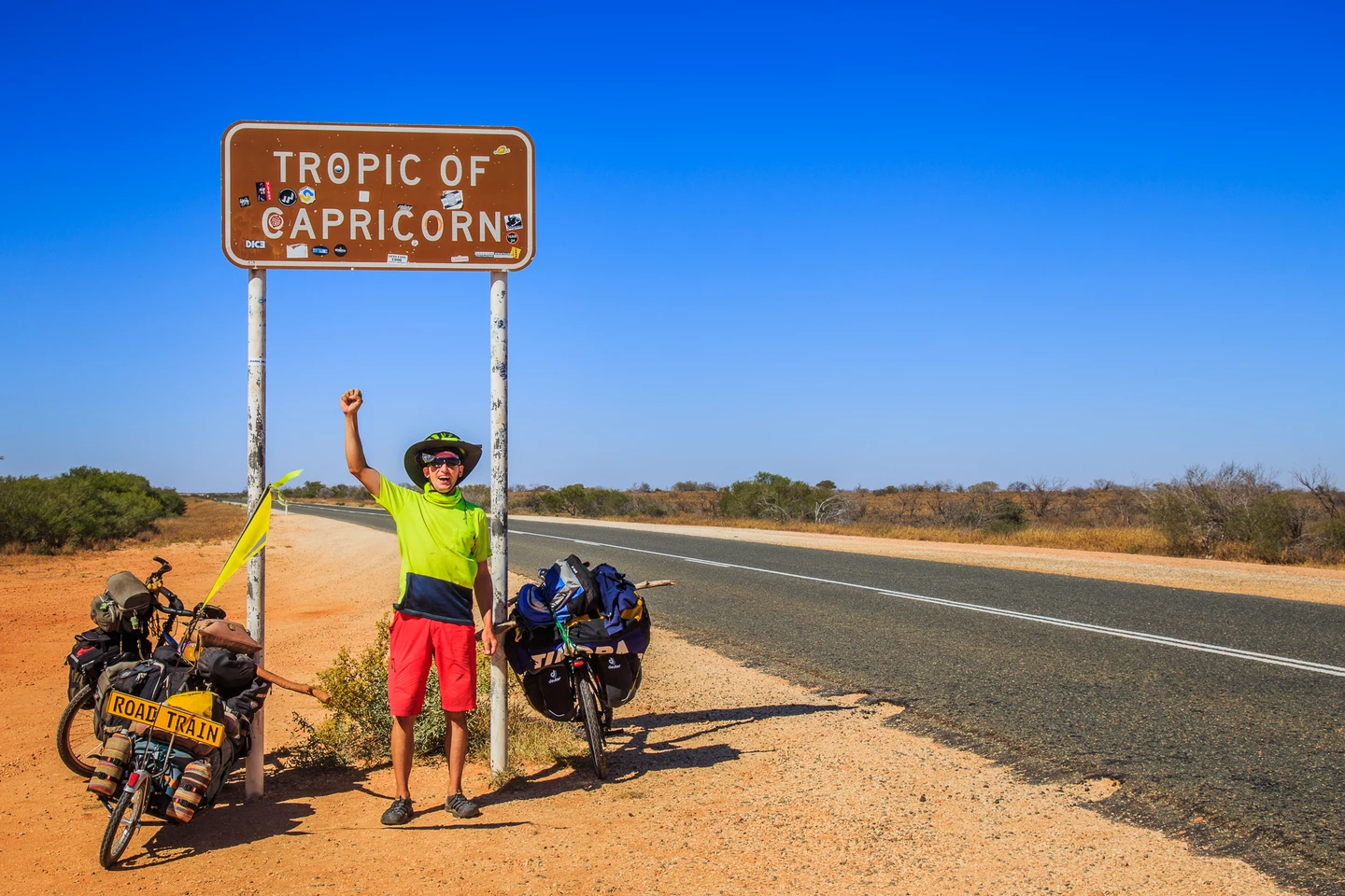 Mit heftigem Gegenwind erreichten wir am ersten Tag den Wendekreis des Steinbocks. Diesen habe ich nun bereits schon dreimal mit dem Velo überquert (1 mal in Namibia und 2 mal in Australien).