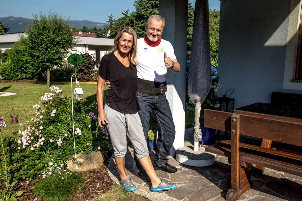 So fuhr ich schon nach wenigen Stunden wieder weiter in Richtung Süd Steiermark. In Deutschlandsberg durfte ich bei Gudrun und Wolfgang übernachten. Wir hatten uns auf dem Campingplatz in Imst (Tirol) kennen gelernt. Mit Wolfgangs Hilfe konnte ich zum ersten mal mein Velo mitsamt Gepäck wägen: 72kg bringt mein Traktor auf die Waage. Vielen herzlichen Dank für die tolle Gastfreundschaft!