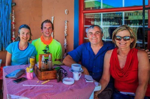 Die Gastfreundschaft der (weißen) Südafrikaner ist wirklich beeindruckend. Bereits am zweiten Tag luden uns Susan und Eugene zum Essen ein und boten uns zwei Nächte auf dem Campingplatz an. Sie erkennen die Küste mit zwei Mountainbikes und einem Allradfahrzeug inklusive Anhänger. In den nächsten Tagen durften wir unser Gepäck mitnehmen lassen. Am Abend hatten wir einige aufregende Gespräche und haben viel über das Leben in Südafrika gelernt.