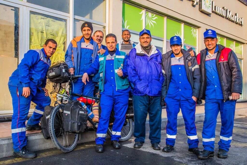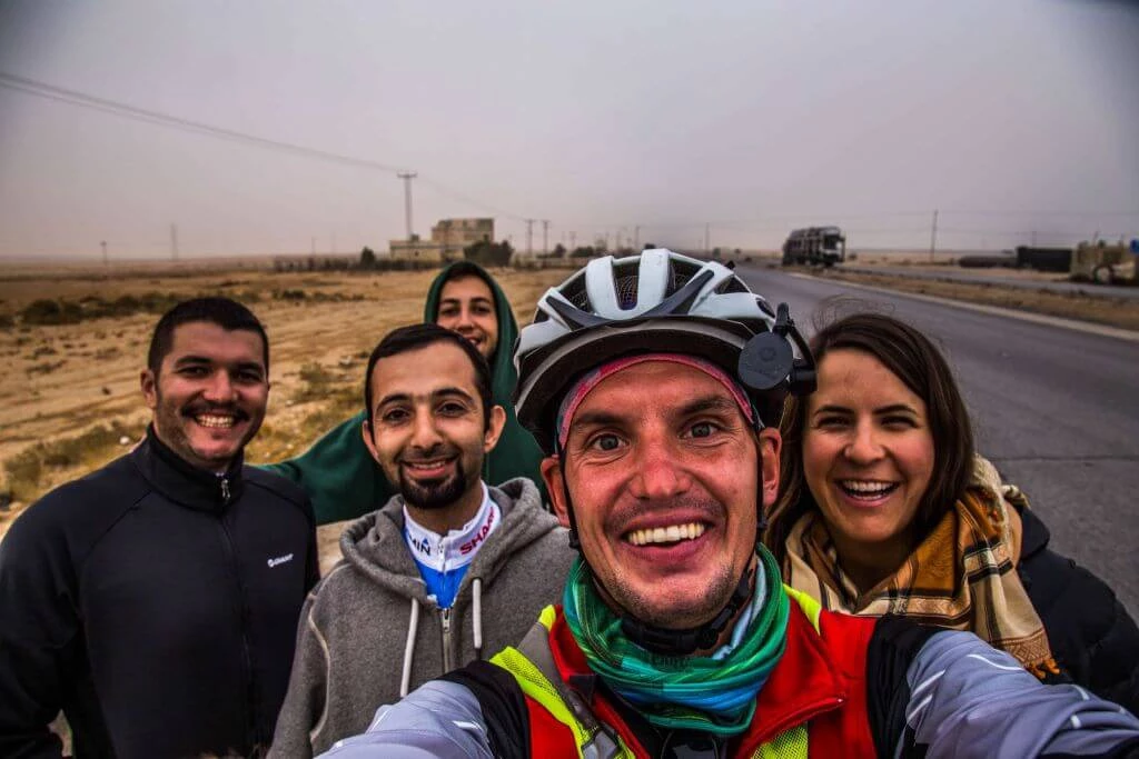 Dies sollte bei weitem jedoch nicht der exklusivste Schlafplatz bleiben. Zurück auf dem Highway wurde ich immer wieder von Lastwagenfahrern zu Schei (Tee) oder Kaffee eingeladen. Ähnlich wie in der Türkei hatte ich am Abend jeweils mehr Schwarztee als Wasser in mich hinein geschüttet. Aber auch sonst hielten viele Leute spontan an um sich mit mir zu unterhalten. So beispielsweise das Team von Cycling Jordan, die sich auf Veloreisen in Jordanien spezialisiert haben.