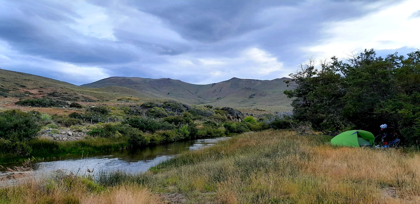 Beim Arroyo Pichileufu kam die erste Flussdurchquerung. Ein paar Fischer suchten gerade Windschutz als ich mein Velo durch den Fluss stoss.