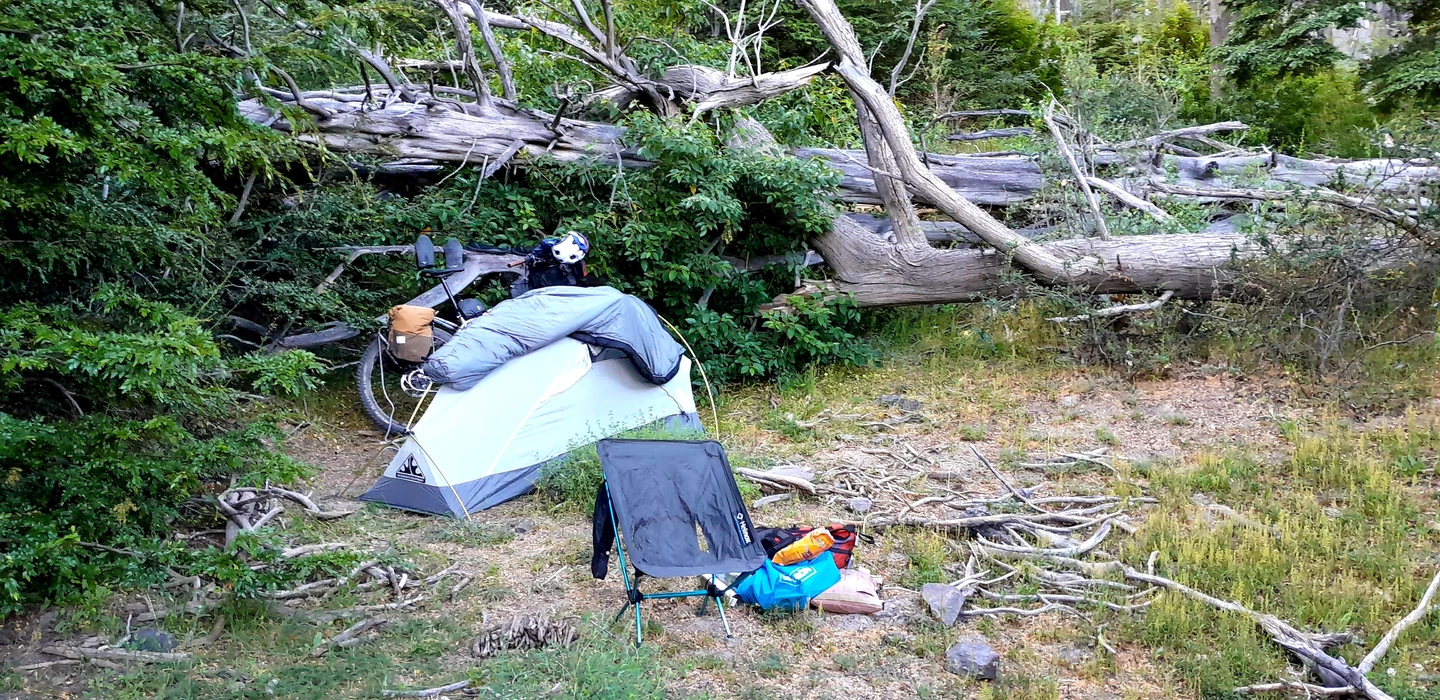 Am Lago Correntoso entschloss ich mich noch ein wenig weiter zu radeln und fand ein paar Kilometer vor Villa La Angostura einen Platz zum Wildzelten, direkt neben der Strasse.