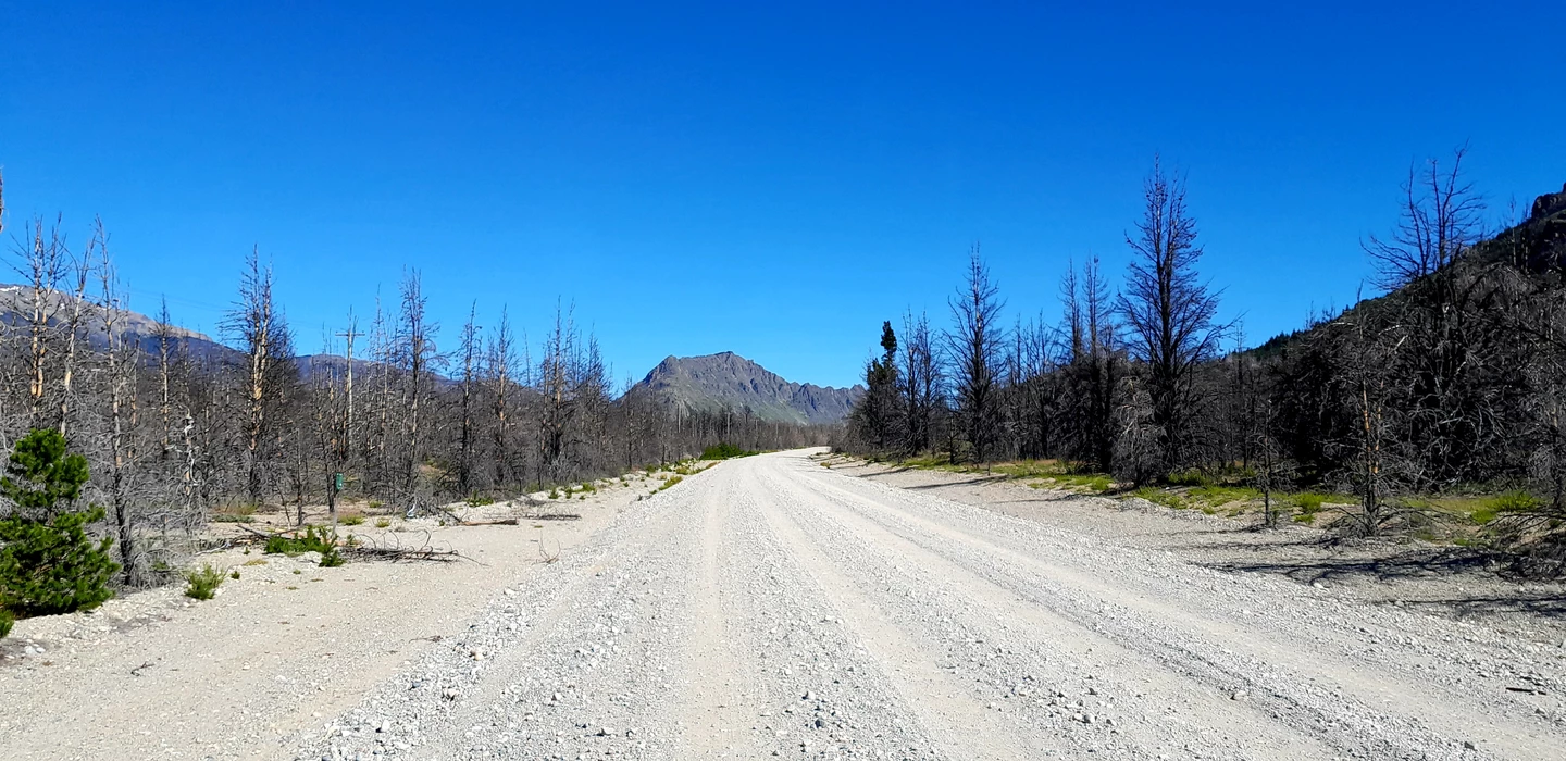 Da es überhaupt keinen Windschutz hier gab fiel mir die Entscheidung zur Weiterfahrt leicht. Jedoch endet die fahrbare Strasse an diesem Punkt und das ganze verwandelt sich in ein Hike and Bike Abenteuer.