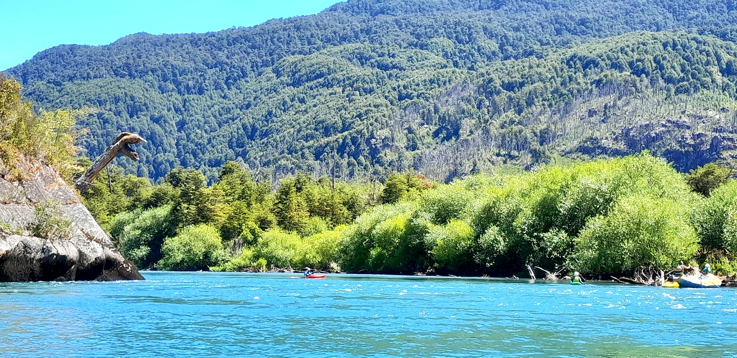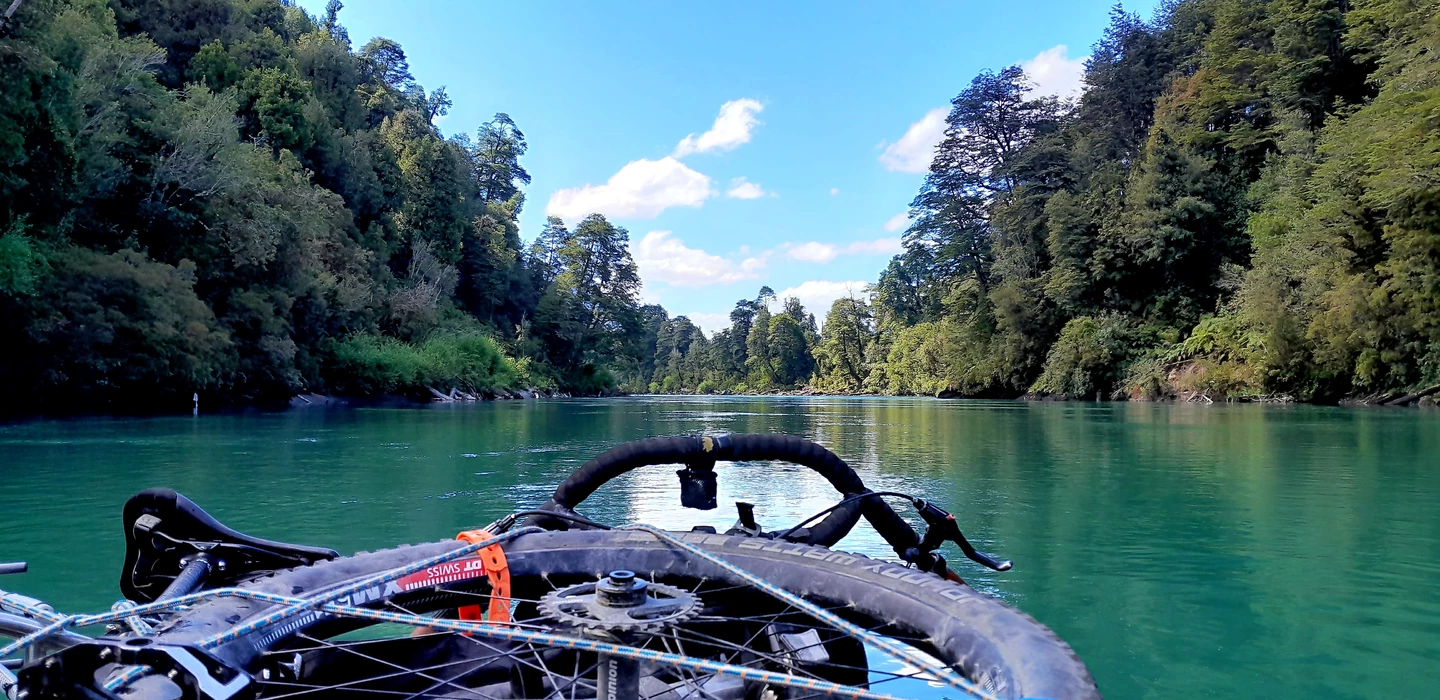 Wir wählten den unteren Abscnitt des Rio Espolon, welcher aus dem Lago Espolon bis in den Futaleufu Fluss fliesst. Ohne Gepäck und Velo ist es ein ganz anderes Gefühl auf dem Wasser.