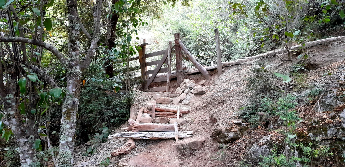 Zusammen mit Faustine und Hugues lief ich nach dem Frühstück in Richtung Flugfeld. Kurz davor zweigt ein kleiner Weg auf den Sendero Los Arrayanes ab.