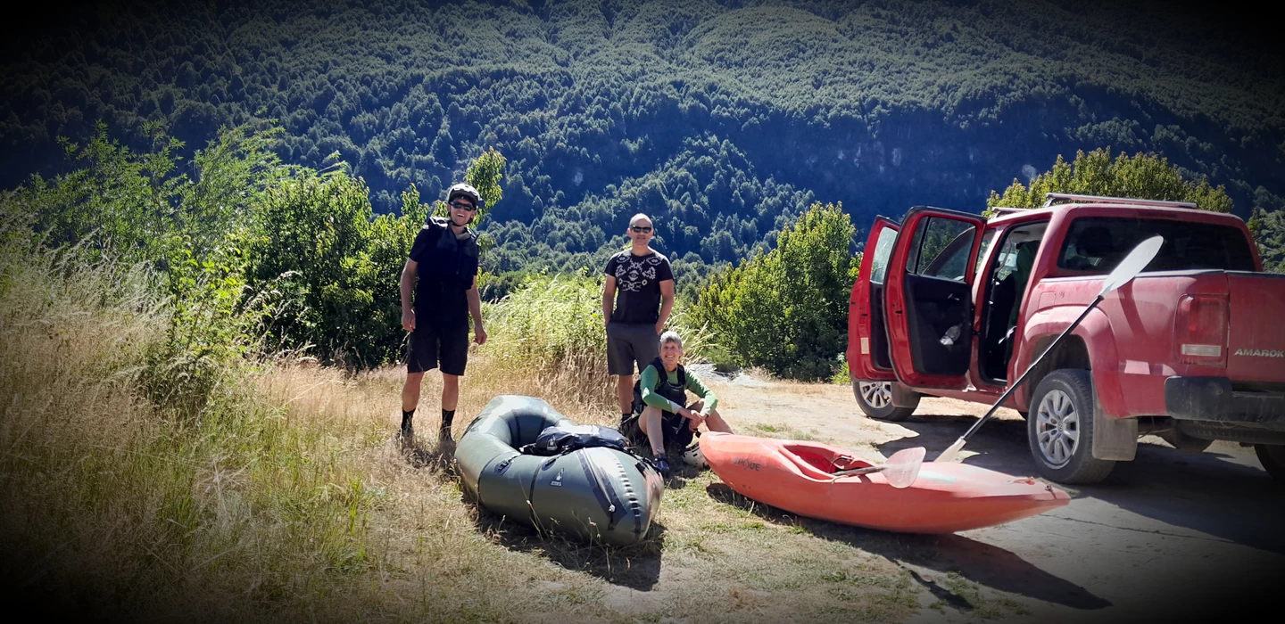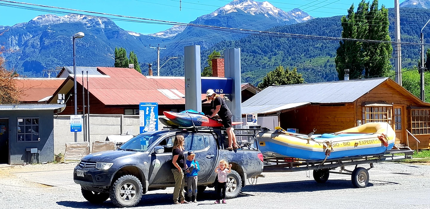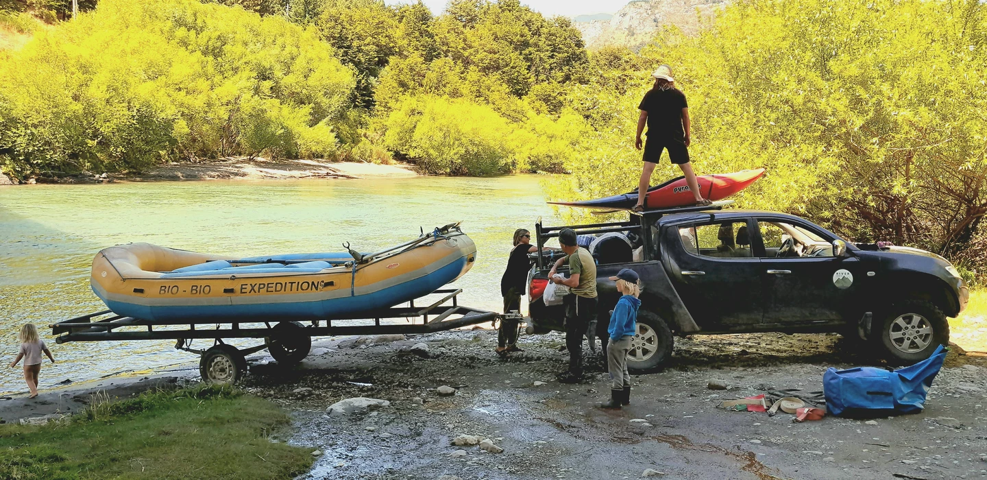 Bei der Rafting Firma Bio Bio Expedition konnten wir ein Raft mit Anhänger für die nächsten Tage ausleihen. Nach einer etwa 2 stündigen Autofahrt erreichten wir die Ortschaft Palena. Dort traffen wir unser letztes Teammitglied, Elias. Er ist hier aufgewachsen und arbeitet als Kajak Instruktor in der Gegend.