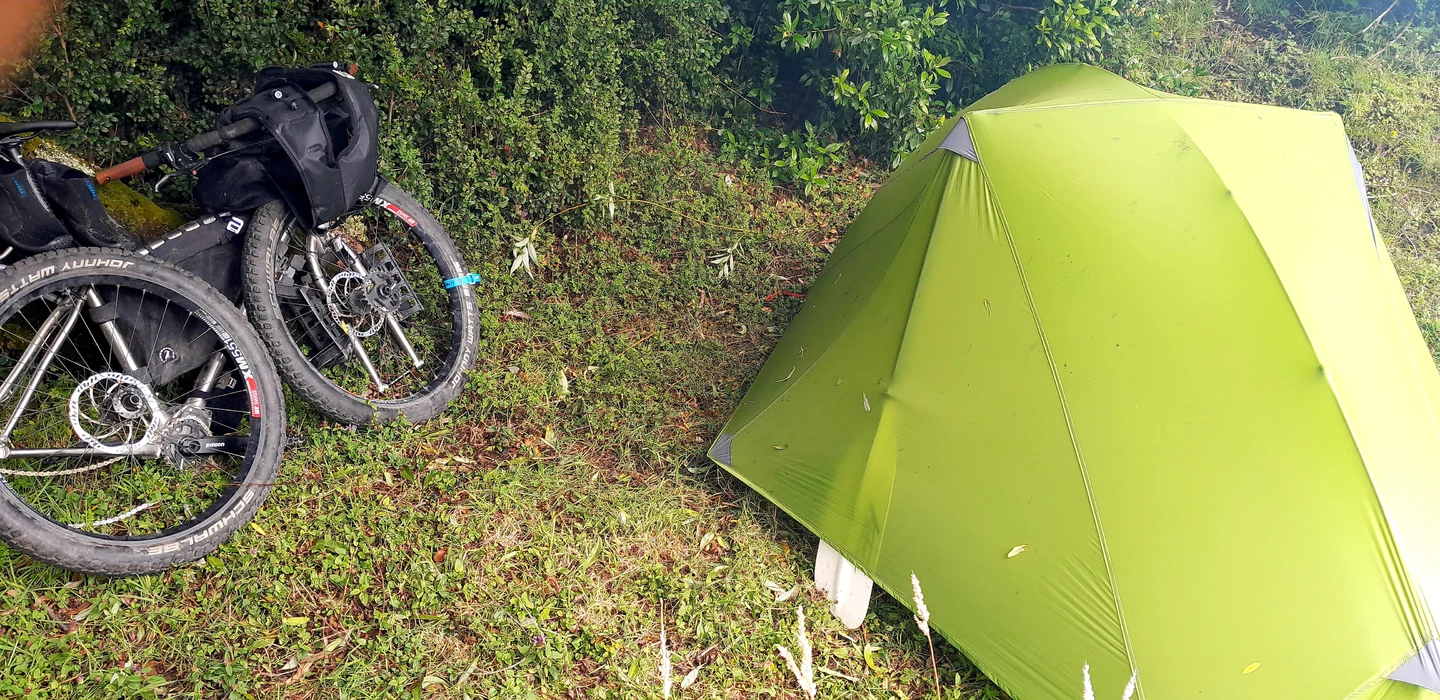 Jedoch wurde das Wetter zunehmend immer schlechter. Gerade noch rechtzeitig fand ich ein gut geschützer Platz , genug weit entfernt vom Ufer und hinter ein paar hohen Bäumen und Sträuchern.