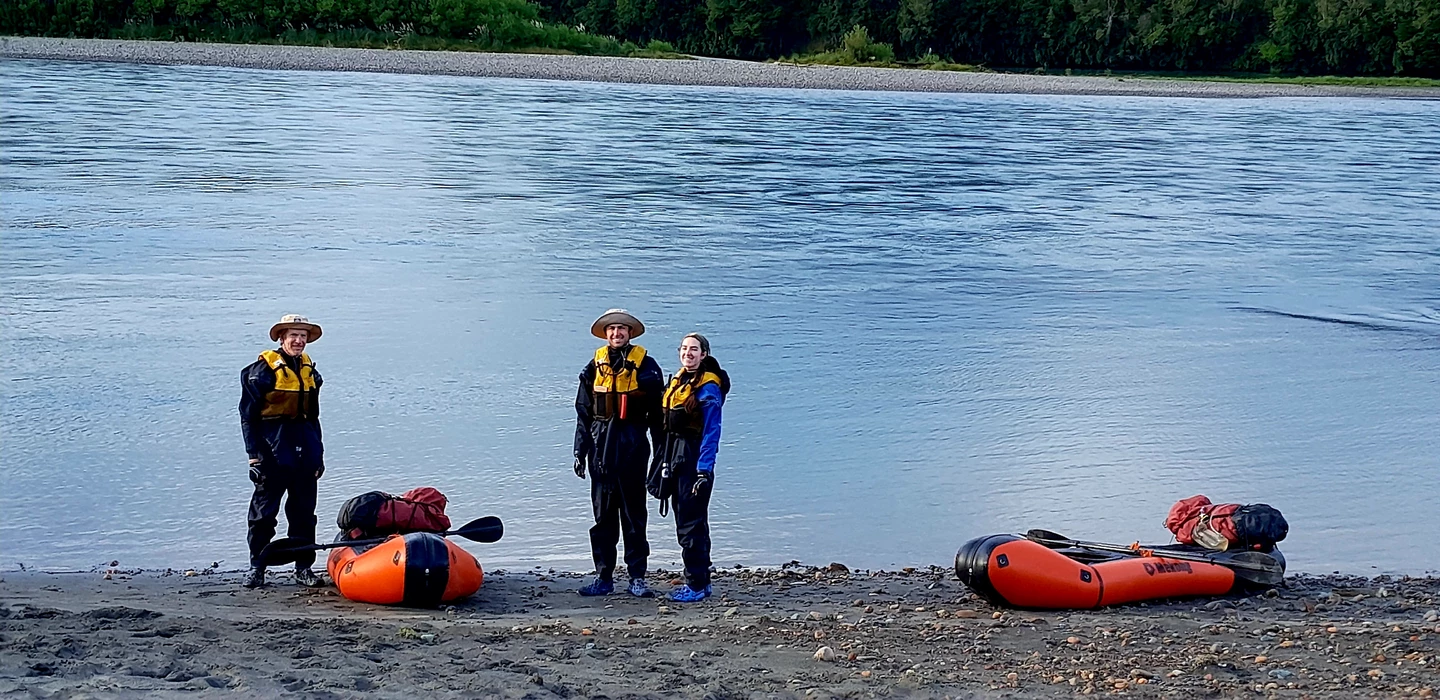 Mit Caroline und Rhys (ein Mitarbeiter von Mariann und Ron, der gerade auch hier zu Besuch ist) ging es am Nachmittag auf meine erste Flusstour mit dem Packraft.
