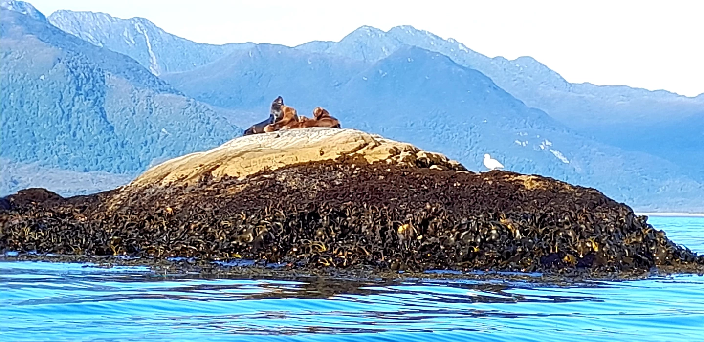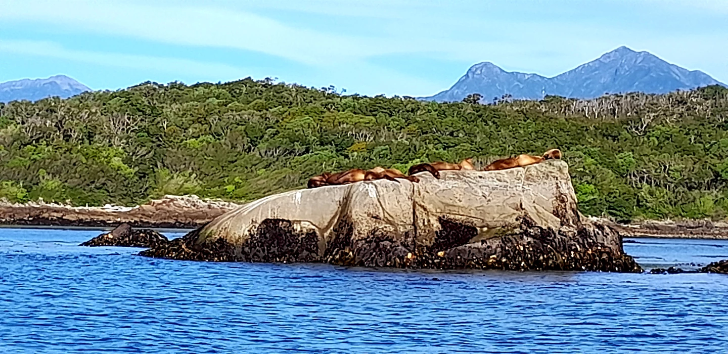 Die Inselgruppe befindet sich im Reserva Marina Anihue, das Meeres Reservat steht komplett unter Schutz. Gleich am Anfang sahen wir die ersten Gruppen von Seelöwen.