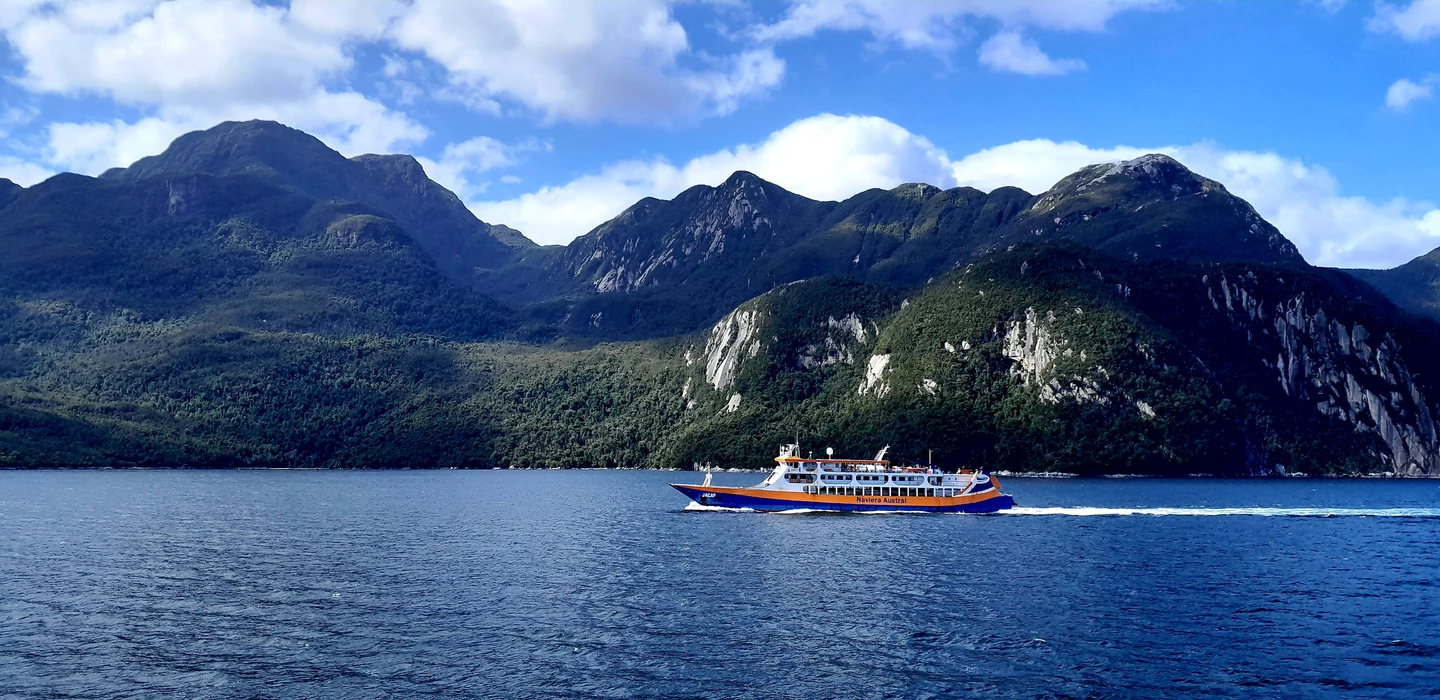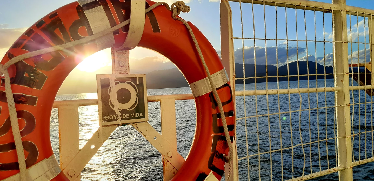 Auf der Fahrt nach Caleta Puyuhuapi wurde es richtig schön warm. Hier gibt es ein paar Inseln, wo man nur mit Booten hinkommt und ein paar wenige Menschen leben. Die Fähre liefert ihnen dazu wichtige Sachen wie zum Beispiel Lebensmittel und Baumaterial.