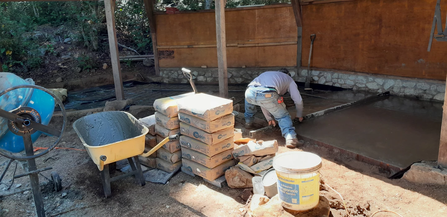 Nach 5 Stunden war ich wieder zurück im Camp, wo per Zufall gerade Caroline und Joe angekommen waren. Sie sind ebenfalls gerade in Chile unterwegs. Ein toller Zufall. In der Küche baute Nano gerade einen neuen Betonboden ein und ich half ihm am nächsten Tag ein wenig dabei.
