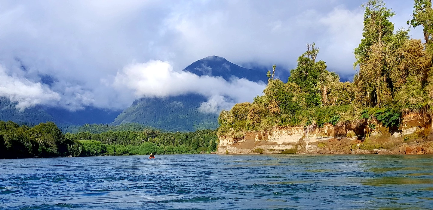 Das erste Tagesziel war die Rio Rosselot Mündung. Dort musste ich zuerst ein Stück weit mit dem Boot den Fluss hochlaufen, um oberhalb des Zusammenflusses an das andere Ufer zu gelangen.