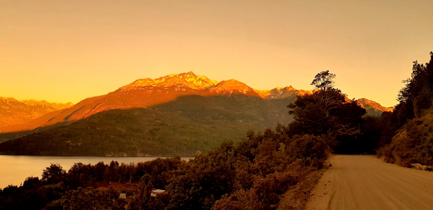 Der nächste Tag begann mit einem schönen Sonnenaufgang. Heute radelte ich ganz früh los um möglichst bald bei der geplanten Einbootstelle am Lago Futalaufquen anzukommen.