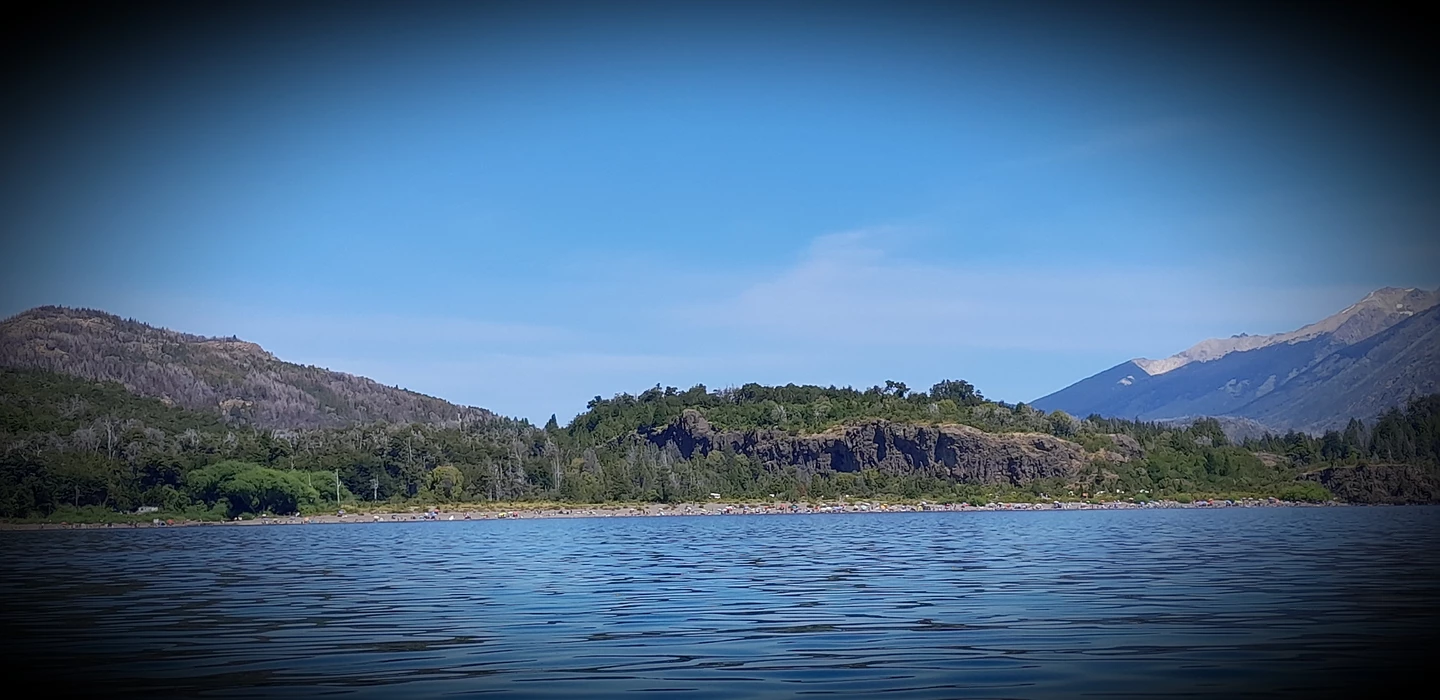 Einige Male sprang ich in den See um mich ein wenig abzukühlen. In Villa Futalaufquen, dem südlichen Ende vom See, plante ich direkt an der Strasse auszubooten. Jedoch herrscht hier richtiger Massentourismus und ich fand erst am untersten Ende einen schattigen Platz, wo ich alles wieder auf mein Velo verladen konnte.