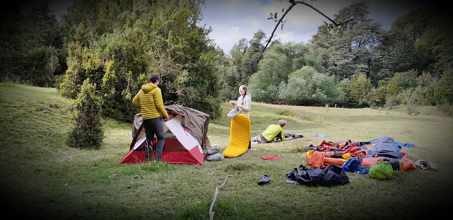 Bei einbruch der Dämmerung kam ich dort an. Mariann und Ron waren gerade nicht dort, dafür einige andere Kajaker. Sie luden mich gleich zu einem Bier ein und ich durfte mein Zelt im Camp aufstellen (https://www.rivernorth.no/en/products/travels/chile/).