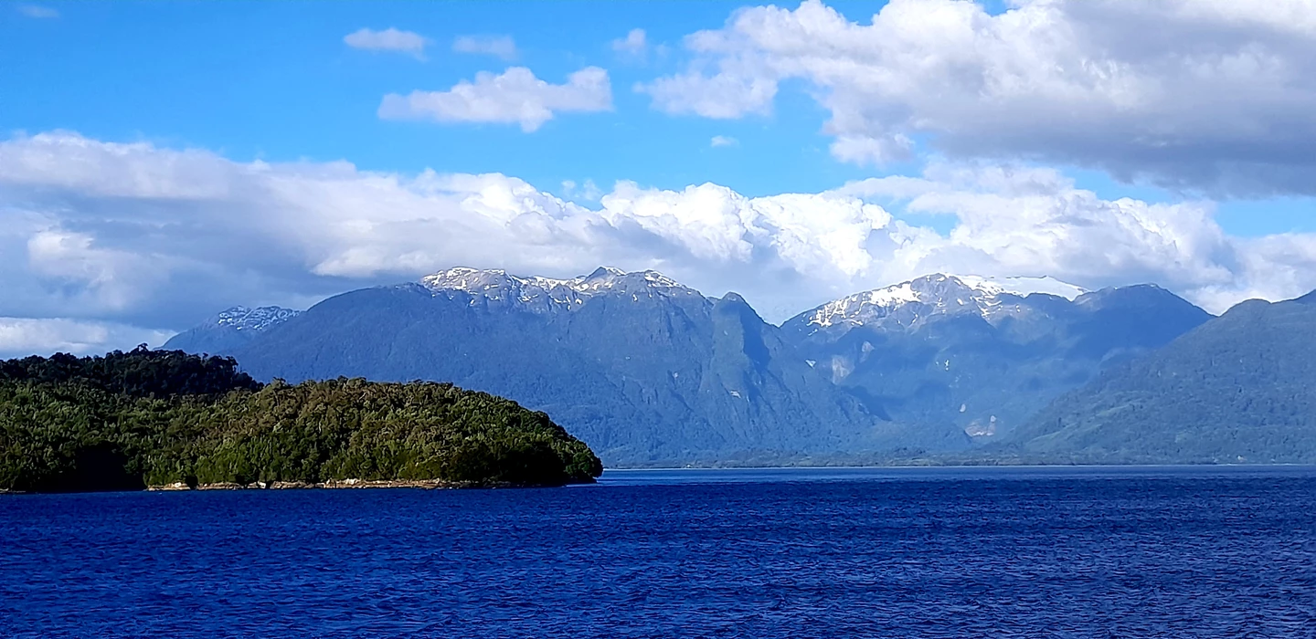 Die Aussicht auf die umliegenden Berge vom Wasser aus ist fantastisch. Dank dem schönen Wetter konnte man bis zur Grenze von Chile blicken.