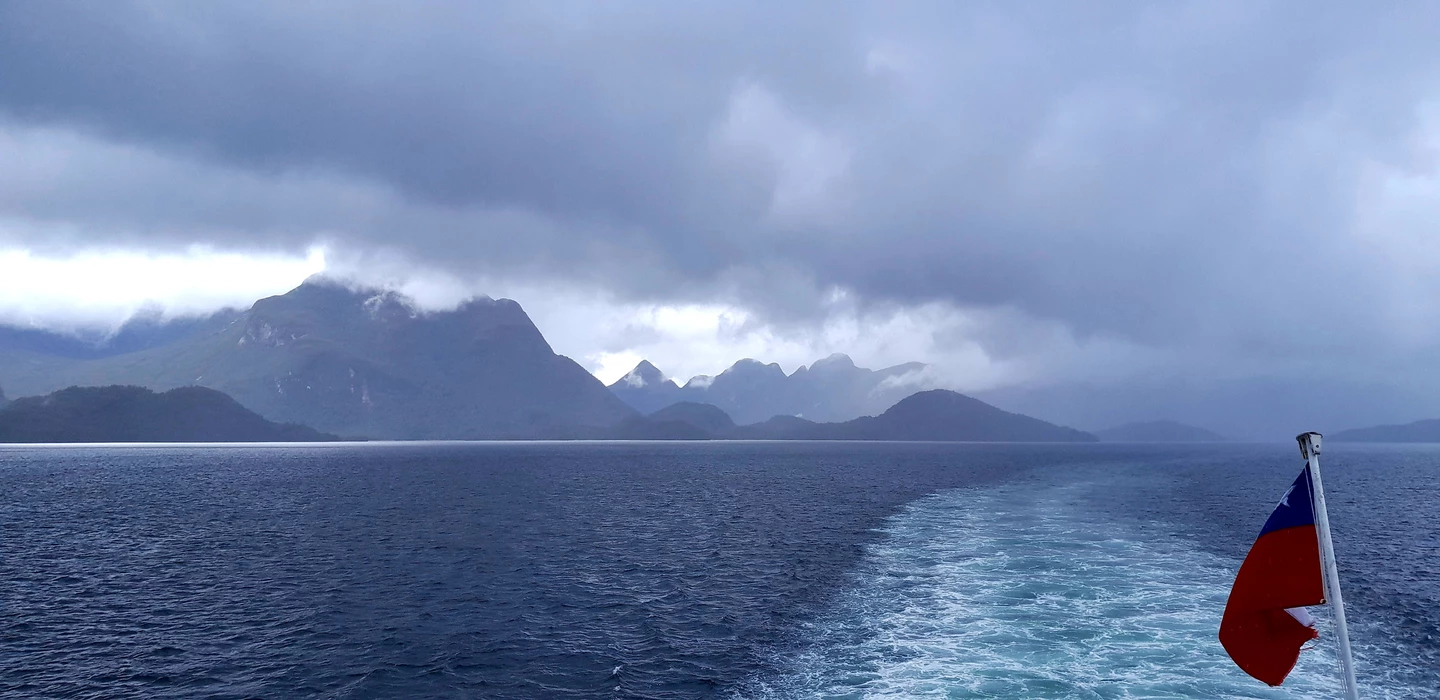 Am Anfang der Fahrt wollte das Wetter nicht so wirklich mitspielen. Einige ziemlich starke Regengüsse zogen übers Deck. Erst als wir in den Hafen von Melimoyu einfuhren beruhigte es sich langsam.