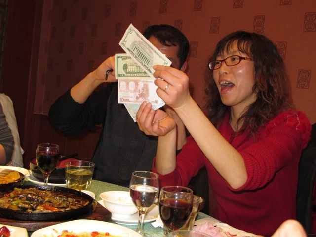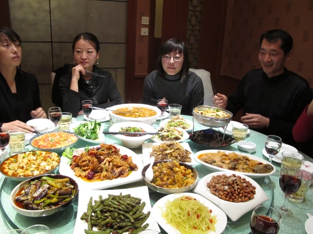 Die gefüllten Teigtaschen kriegt man in verschiedensten Variationen und schmecken himmlisch. Besonders frittiert. Am Dienstag lud uns die Schule als Dankeschön zu einem Bankett mit dem Schuldirektor und den Englischlehrern ein. Bei den Chinesen gibt es ganz spezielle Traditionen an einem Bankett. Der Gastgeber versucht mehr zu servieren als der Gast essen kann. Leer gegessene Schalen lassen den Gastgeber knausrig erscheinen. Kein Gast trinkt allein, getrunken wird nur nach einem Trinkspruch. Beim Trinkspruch fast man das Glas mit beiden Händen an, weist in Richtung des Gastgebers und ganbei (trocknet das Glas). Ein solch riesiges Festessen habe ich noch selten gesehen. Dank Jennys Übersetzung konnten wir spannende Diskussionen führen. So wollten sie von uns genau wissen, was wir über China wissen und welche chinesischen Prominenten man in Europa kennt. Uns nahm natürlich auch wunder, was für Kenntnisse sie von der Schweiz haben. Immer wieder folgten Trinksprüche mit grossen Danksagungen für unser Engagement.
