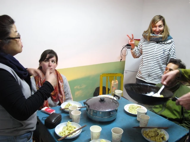 Jenny wurde am nächsten Tag von einer Erkältung heimgesucht. Die Tageshöchsttemperatur betrug -2 Grad. Irgendwie fällt es einem schwierig bei solchen Aussichten wieder aufs Velo zu steigen. Im Iran war es irgendwann zu heiss und nun zu kalt. Wenn man nur das Wetter steuern könnte. Jenny wurde von ihren Lehrerkolleginnen gut umsorgt. Andi und ich lieferten die blöden Sprüche dazu. Mit Humor wird man am schnellsten wieder gesund. Ich beschloss, noch einen weiteren Tag zu bleiben und am Freitag weiter zu fahren. Die Köchin an der Schule zauberte mir nochmals ein köstliches Nachtessen zum Abschluss auf den Tisch. Danach hiess es für einmal mehr: Abschied nehmen. Nicht nur von Jenny und ihrer Schule, sondern auch von Andi. Vielen Dank Jenny für die tolle Zeit in Yumenshe. Es hät gfägt! Andi und Tim wünsche ich an dieser Stelle auch eine gute Weiterreise. Passt auf euch auf und denkt daran: „Sometimes you have to suffer!“. Als ehrlicher Verlierer gratuliere ich Andi zu seinem Gesamtsieg im Yatzi spielen.