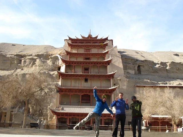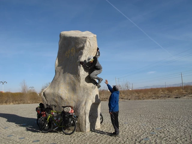 Neben dem Essen testeten wir auch erstmals in China beim Würfelspiel den Reisschnaps „baijiu“. Ein ziemlich hoch konzentrierter Drink, der am nächsten Tag für leichte Kopfschmerzen sorgte. Der Hauptgrund für einen Besuch in Dunhuang sind die Mogao- Grotten. Da diese auf unserem Weg lagen, entschlossen wir uns einen Abstecher dorthin zu machen. Unterwegs fanden wir einen kleinen Boulderspot.