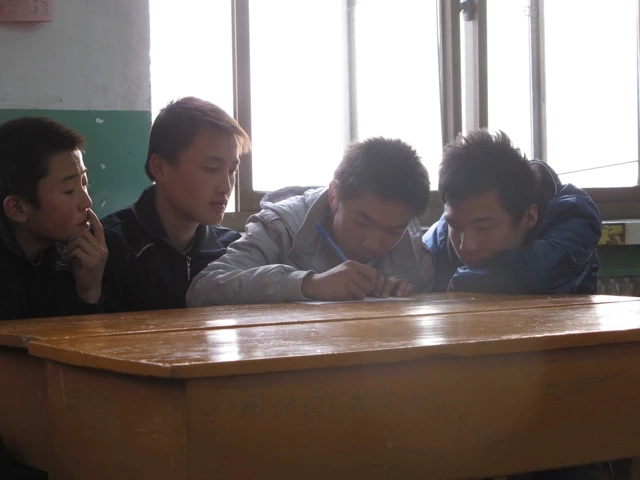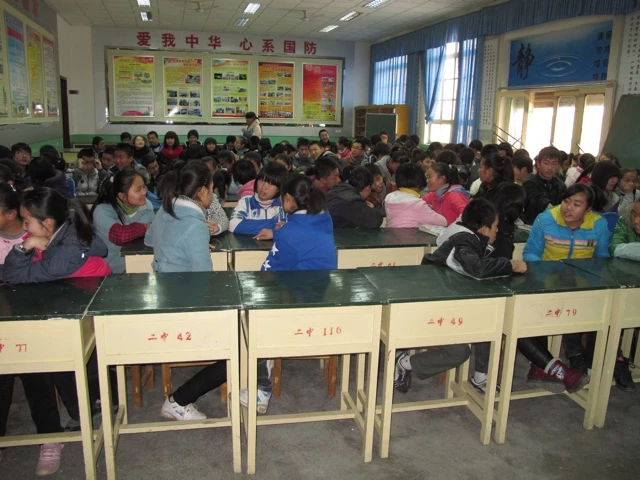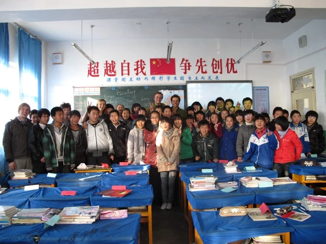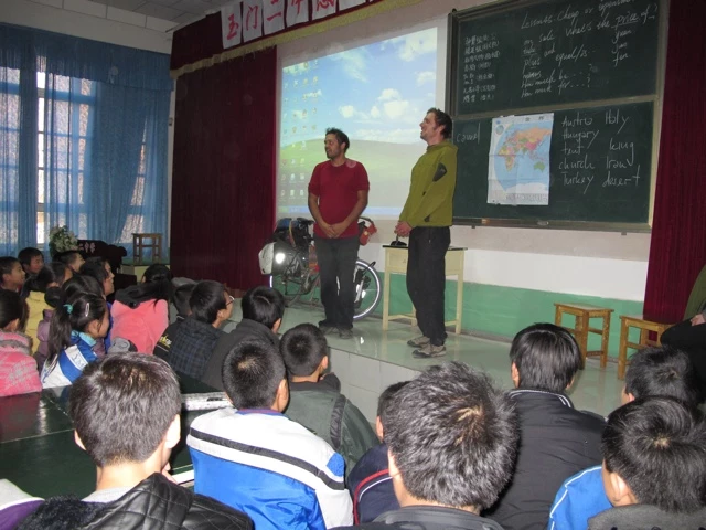 Ausländer sind hier eine ziemliche Seltenheit. Selbst Jenny wird immer noch wie ein Alien betrachtet, wenn sie manchmal unterwegs ist. Mittlerweile habe ich mich schon ein wenig an die Blicke gewöhnt. Die Chinesen finden es meistens extrem amüsant, wenn man versucht sich mit ihnen zu unterhalten oder ihre Fragen beantwortet. Ein aufgestelltes Volk. Da darf man sich auch ab und zu wie ein Alien benehmen. Am Freitag fuhr Tim bereits weiter nach Jiayuguan, während Andi und ich nochmals eine Präsentation vor drei Klassen machten.