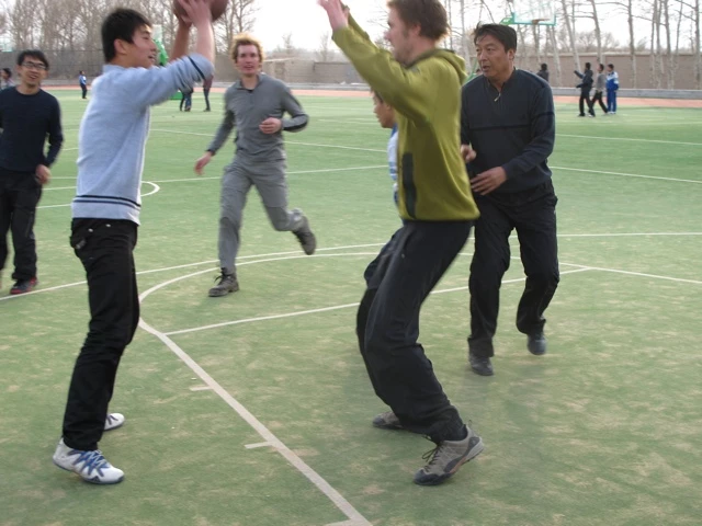 Danach wurden wir zum Basketball Spiel aufgefordert. Zwei weitere Lehrer unterstützten uns im harten Kampf gegen die Schüler. Das halbe Schulhaus schaute dabei zu. Danach nahmen wir mit Nina zusammen den Bus nach Jiayuguan in den wohlverdienten Wochenendurlaub.