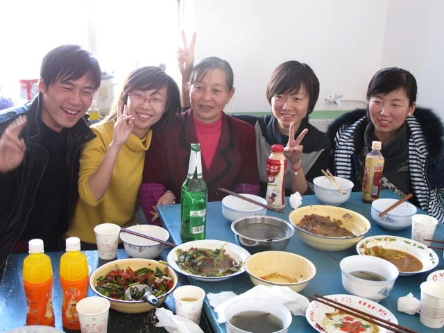 Ein solch leckeres Essen hatte ich schon lange nicht mehr. Die Köchin hat selbst 20 Jahre als Lehrerin gearbeitet, musste dann als Mutter aber auf dem Feld arbeiten und wäre jetzt langsam im Pensionsalter. Da es in China jedoch kein Rentengeld gibt, hält sie sich mit diesem Job über Wasser. Sie verdient damit 200 Yuan pro Monat und schaut nebenbei noch für den Haushalt und das Enkelkind. Eine bewundernswerte Frau.