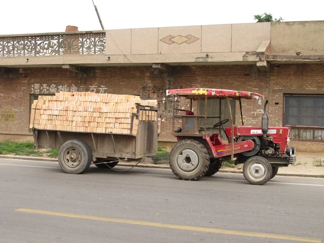 Landschaftlich ging es die ersten paar Tage durch ein ziemlich hügeliges Gebiet. Ein wenig wie Velofahren im Jura. Lehm wird hier im grossen Stil abgebaut, verarbeitet und in hübschen, kleinen Traktoren zu den Lieferanten verteilt. Durch die schwere Last fuhren die Traktoren ziemlich langsam, so konnte ich mich jeweils hinter einem der Dinger verstecken und hatte dadurch den besten Windschutz, welcher ein Velofahrer sich wünschen kann.