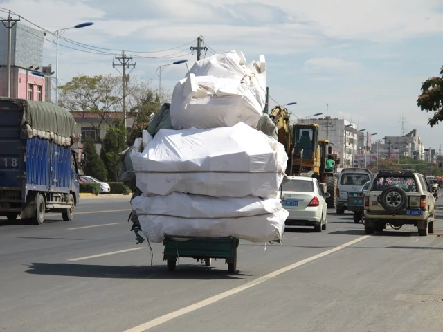 In Kunming hatte ich mir eine Leuchtweste gekauft um in den Tunnels und bei starkem Verkehr besser gesehen zu werden. Man sieht zwar aus wie ein Christbaum, fühlt sich aber irgendwie ein wenig sicherer damit. Zudem sorge ich damit bei den Chinesen immer für einen kurzen Lacher.