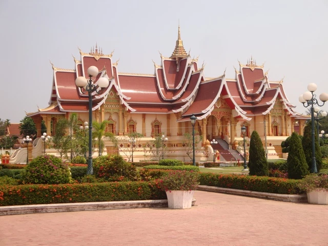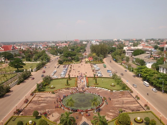 Auf dem Rückweg besuchten wir noch das Siegesdenkmal Patou Xai. Es wurde in den 1960er Jahren als „Denkmal für die Helden der königlichen Armee“, d. h. für Laos‘ Unabhängigkeit von Frankreich (1949) errichtet. Als 1975 die Pathet Lao die Macht übernahmen, wurde das gewaltige Betongebilde für 20 Jahre namenlos. Allgemein war es schlicht als Anousavali (Denkmal) bekannt. Zum 20. Jahrestag der Machtergreifung im Jahre 1995 erhielt der Triumphbogen die neue Widmung „Den Helden des 23. August 1975“ (Tag der Machtübernahme in Vientiane).