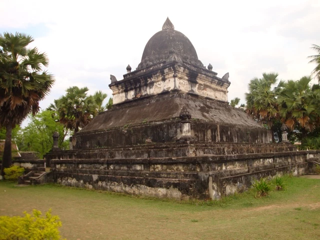 Nach unserer Fusstherapie besuchten wir noch den That Makmo (Wassermelonen-Stupa), auf dem Gelände des Vat Visounarath gelegen. Der Name leitet sich von seiner halbrunden Spitze ab. Gestiftet von Phantin Xieng, Gemahlin von König Visounarath, im Jahr 1504, wurde die Stupa 1932 wieder aufgebaut, wobei die kostbaren Beigaben in den Königspalast überführt wurden.