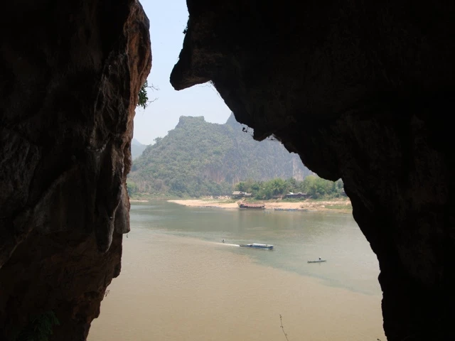 Zuerst fuhren wir am nächsten Morgen mit einem Holzboot dem Mekong hoch, um die Pak Ou-Kalksteinhöhlen – direkt an den Uferklippen des Mekong, etwa 25 Kilometer nördlich von Luang Prabang zu besichtigen. Nur schon die Fahrt mit diesem komischen, klapprigen Schiff war ein Erlebnis für sich.
