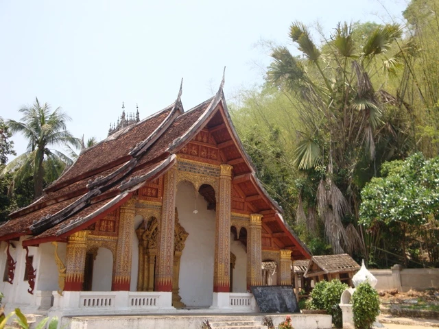 Als erstes wollten wir den Tempel Wat Xieng Thong, der 1560 unter König Setthathirath erbaut und 1960–1962 restauriert wurde, besuchen. Als einziger Tempel der Stadt überstand er die Plünderung von 1887 unversehrt. Der Baustil mit dem fast bis auf den Boden reichenden Dach ist typisch für das nördliche Laos. 1995 wurde Luang Prabang zum UNESCO-Weltkulturerbe erklärt. 32 buddhistische Klöster sowie die gesamte französische Kolonialarchitektur in der Stadt wurden unter Denkmalschutz gestellt und werden seitdem restauriert. Besonders die Wandmalereien waren sehr eindrücklich.