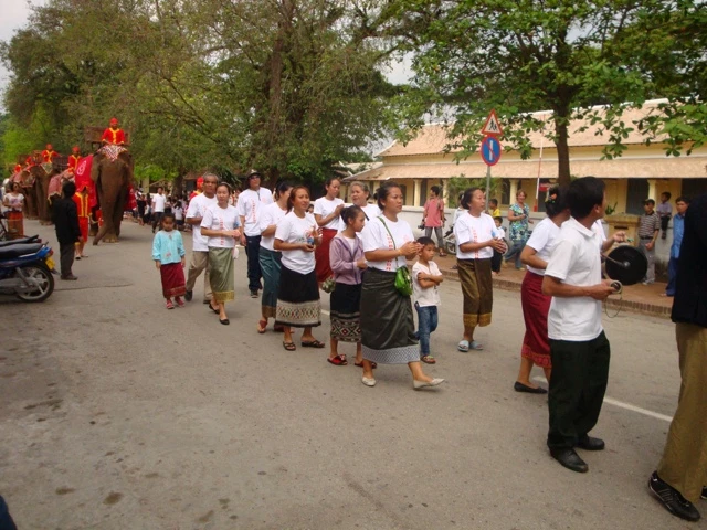 Zurück in Luang Prabang war das Neujahrsfest bereits im vollen Gange. Das Neujahrsfest (Pbeemai) richtet sich nach dem laotischen Mondkalender und findet meistens Mitte April statt. Dabei wird während 4 Tagen eine grosse Wasserschlacht veranstaltet. Wer glaubt, er würde in dieser Zeit trocken bleiben sollte besser ein anderes Reiseland anvisieren.