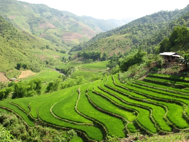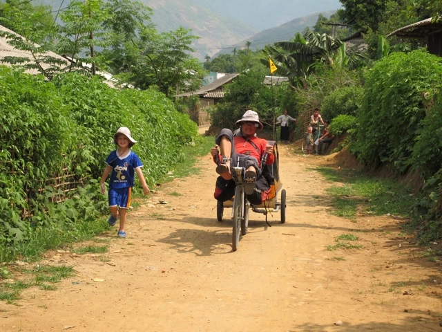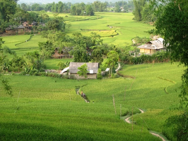 In Nghai Lo entschlossen wir uns vorerst einen Ruhetag einzulegen und ein wenig die abgelegenen Seitentäler zu besichtigen. Als wir am ersten Tag ein wenig durch die Reisfelder und Dörfer fuhren, wurden wir prompt von einem Mann nach Hause eingeladen. Wir verabredeten uns für den nächsten Tag mit ihm.