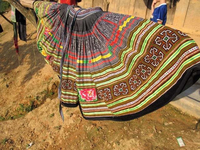 Vietnam ist ein multiethnisches Land. Etwa 88 % der Bevölkerung sind ethnische Vietnamesen (Việt oder Kinh). Daneben sind 53 ethnische Minderheiten staatlich anerkannt. Die kleinsten Minderheiten haben nur einige Hundert Angehörige. Mir gefielen besonders die Kleidungsstücke der Frauen. Die leuchtenden Farben bieten einen schönen Kontrast zu der grün/braunen Berglandschaft. Die Mường sind eine ethnische Minderheit in Vietnam.