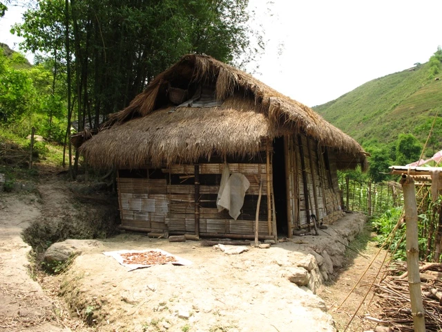 Das Haus unseres Gastgebers war riesig. Im Untergeschoss befand sich der Schlafplatz für die Tiere und die Küche. Im oberen Stockwerk leben mehrere Generationen zusammen. Alles wird untereinander aufgeteilt. Uns kam das ganze Dorf wie eine riesige Gemeinschaft vor. Ich schlief in dem Bambushaus wunderbar. Beim Spaziergang am nächsten Tag führte uns der Vater zuerst zu einem kleinen Haus. Dort wurden wir von seinen Freunden zu einem ersten Essen inklusive Reisschnaps eingeladen.