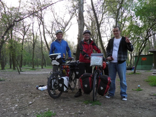 Er hat 10 Jahre in der bulgarischen Armee verbracht und lebt jetzt als Gastarbeiter an diesem tollen Ort. Zur Begrüßung hat er uns Kaffee mit Rakija ( ein höllischer Schnaps) ausgeschenkt. Die Hunde haben die ganze Nacht unser Zelt bewacht. Was eigentlich sehr beruhigend ist. Aber wieso müssen die blöden Köter die ganze Nacht bellen? Genau an meinem Geburtstag haben wir die türkische Grenze überquert. Tom musste als britischer Staatsbürger ein Visa von 15€ kaufen. Ich konnte mit einem freundlichen Lächeln einreisen. In Edirne lernten wir Balci Gökhan vom Edirne Nature Sports Club (Edirne Nature Sports Club) kennen. Er hat uns einen Zeltplatz im Freizeitpark organisiert und spontan Wasser zum Geburtstag geschenkt.