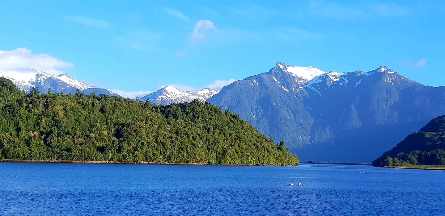 On the drive to Caleta Puyuhuapi it got really warm. There are a few islands here where you can only get there by boat and where a few people live. The ferry delivers important things such as food and building materials.